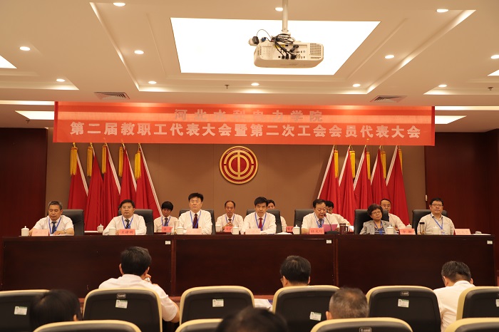 5月27日上午8时,我校第二届教职工代表大会暨第二次工会会员代表大会(以下简称“双代会”)在弘文守正楼九楼报告厅隆重召开。正式代表、特邀代表以及列席代表共130余人参加了大会。 “双代会”由学校党委副书记、工...