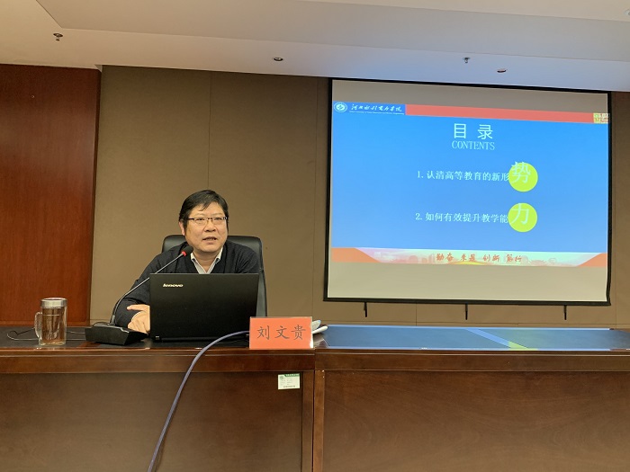 12月4日下午,在弘文守正楼9楼报告厅,我校2020年度新入职教师培训第五讲开讲,教务处处长刘文贵教授作了题为《新时代 新使命 新担当——与青年教师谈谈如何有效提升教学能力》的精彩讲座。 “新时代要有新作为,新使...