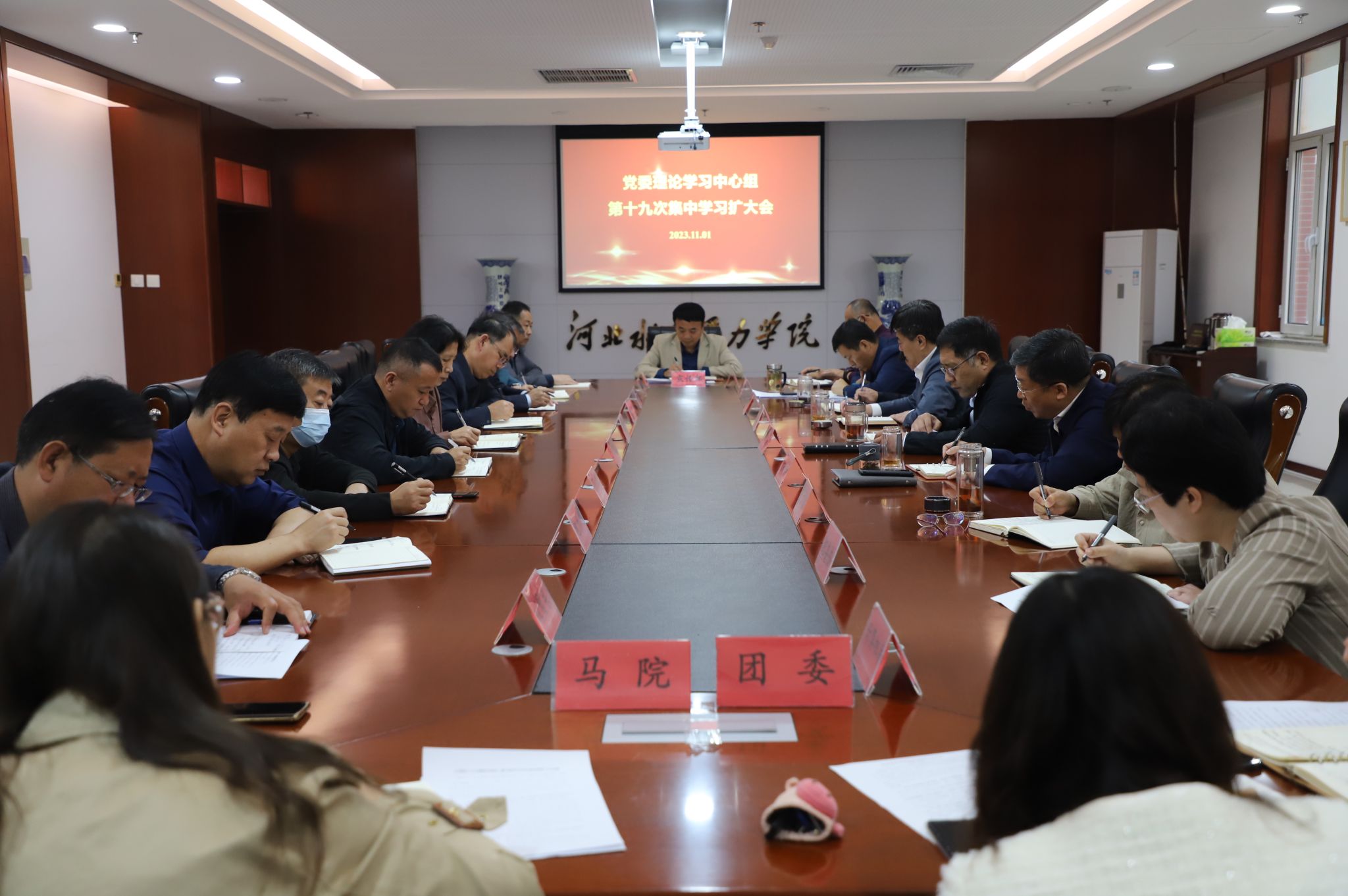 11月1日上午,我校党委理论学习中心组召开2023年第十九次集中学习扩大会,传达学习习近平总书记关于主题教育最新重要讲话精神、习近平总书记对宣传思想文化工作的重要指示以及全国宣传思想文化工作会议精神、习近平总书记在中共中央政治局第九次集体学习时关于对铸牢中华民族共同体意识的重要讲话精神。党委书记张效松主持会议,党委理论学习中心组全体成员、学生工作部、教师工作部、校团委、马克思主义学院负责人以及各系党总支书记参加会议。...