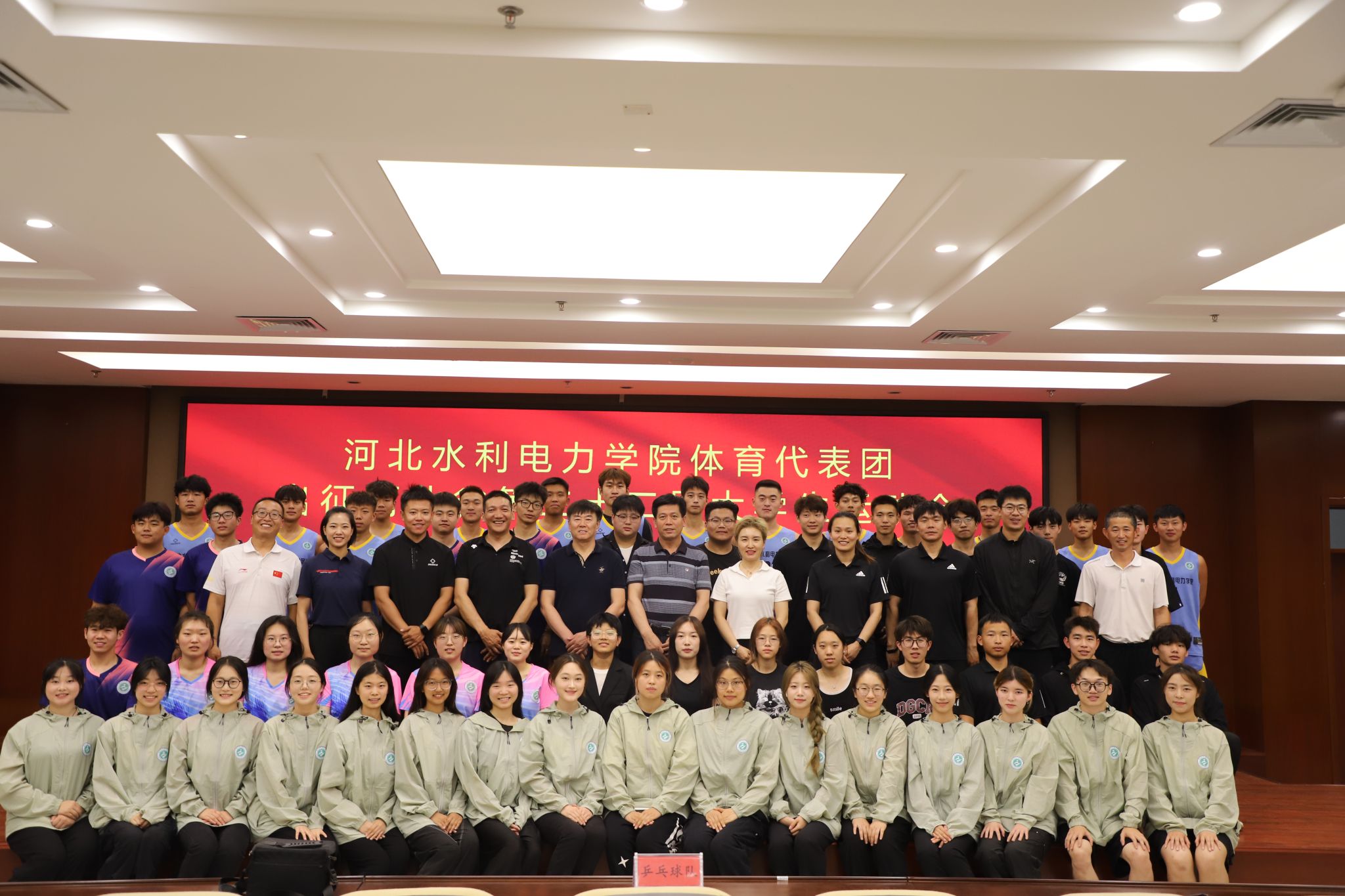 6月4日下午,我校体育代表团出征河北省第二十二届大学生运动会动员大会在弘文守正楼9楼报告厅举行,副校长崔立功及全体参赛教练员、运动员、工作人员及部分教师代表参加会议。体育教学部主任王明阳主持会议。动员会上,王明阳对我校参加此次运动会的代表团组成情况进行了介绍,并对全体队员提出具体工作要求。崔立功对各代表队成员的刻苦训练和积极备战表示了高度赞扬,并从“团结拼搏,赛出水平;文明参赛,展现风采;坚定信念,迎接挑战;...