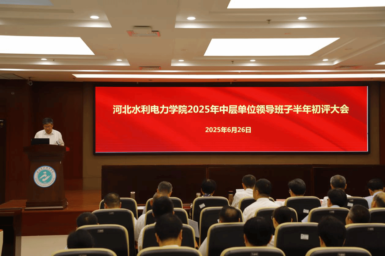 为全面检验中层单位领导班子运行效能,系统总结上半年工作成果,科学谋划部署下半年重点任务,6月26日上午,我校在弘文守正楼九楼报告厅召开2025年中层单位领导班子半年初评大会。学校领导班子全体成员出席会议,全体正处级领导干部参加会议。会议由副校长于振海主持。会上,全校31个中层单位负责同志围绕上半年部门工作谈成绩、说不足,讲规划,逐一进行了述职。在全部述职完成后,与会人员秉持客观、公正、负责的态度,通过考核评价系统,...