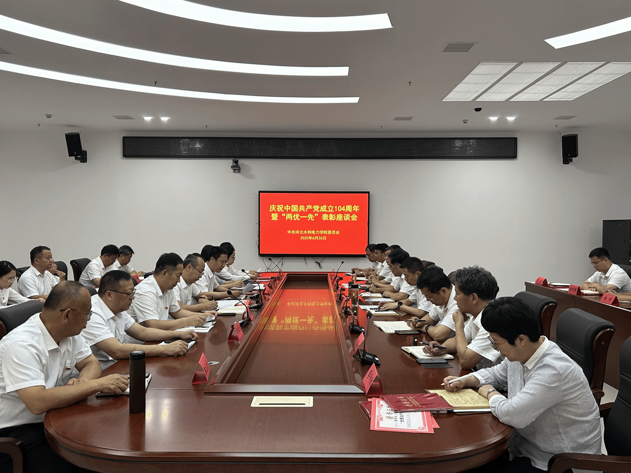 为庆祝中国共产党成立104周年,表彰先进典型,凝聚奋进力量,6月26日下午,我校召开庆祝中国共产党成立104周年暨“两优一先”表彰座谈会。学校党委书记张效松、副校长于振海出席会议。学校党委主要部门负责同志、各二级党组织书记和受表彰的先进集体和先进个人代表参加会议。会议由学校党委副书记、校长王滨主持。于振海宣读了《中共开云集团(kaiyun)股份有限公司官网委员会关于2025年优秀共产党员、优秀党务工作者和先进基层党组织的表彰决定》,对丁建川等70名优秀共产党员、...