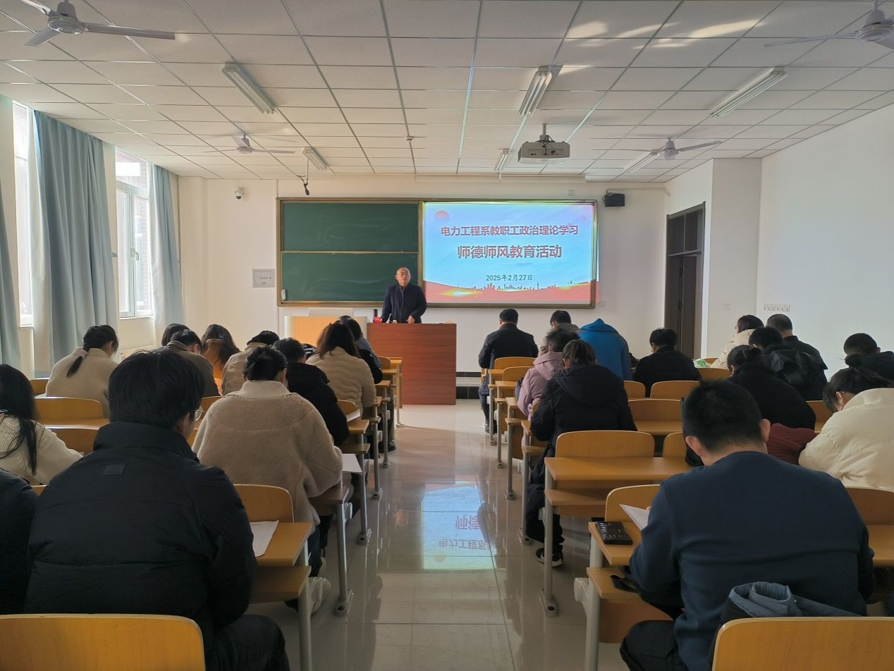 2月27日,电力工程系在求是楼C区203教室召开2025年春季学期教育教学工作会议,系党委书记陈元才出席,会议由系主任李文才主持,全系教职工参加会议。会上,陈元才首先以师德师风教育为切入点,从基层党组织建设、思想政治教育、教育教学安全、学风建设、师生日常管理、学生就业、人工智能对高等教育冲击等方面全面剖析当前我国高等教育面临的形势和机遇,要求全体专任教师和辅导员从多个维度协同配合,加强对学生进行培养和教育,提高人才培养质量,...