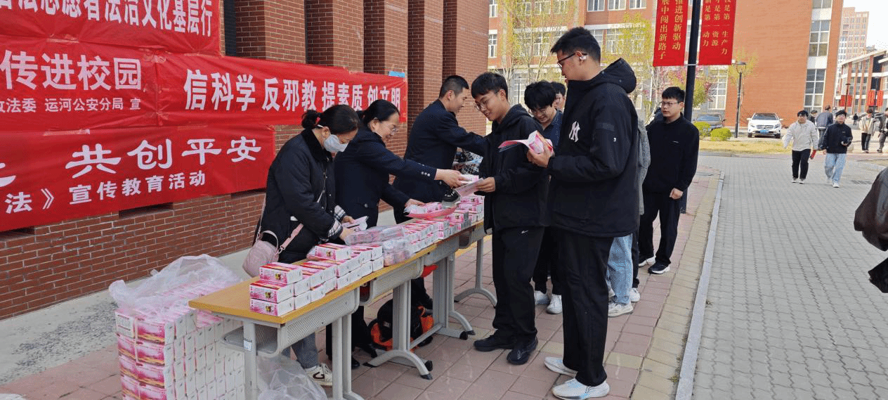 为增强师生的国家安全意识,提升防范各类安全风险的能力,我校邀请运河区政法委、运河区公安分局领导和民警于4月3日下午来校开展了系列国家安全宣传教育活动。此次活动包含了反邪教、网络安全、反恐怖主义、预防电信诈骗等主题,吸引了我校广大师生共同参与。活动伊始,运河区政法委、运河区公安分局领导和民警在图书馆前广场向学生们发放了反邪教、清缴反动宣传品等宣传单和纪念品,并向同学们详细讲解了反邪教、反间防谍、反恐怖主义和维护国家安全的重要性,...