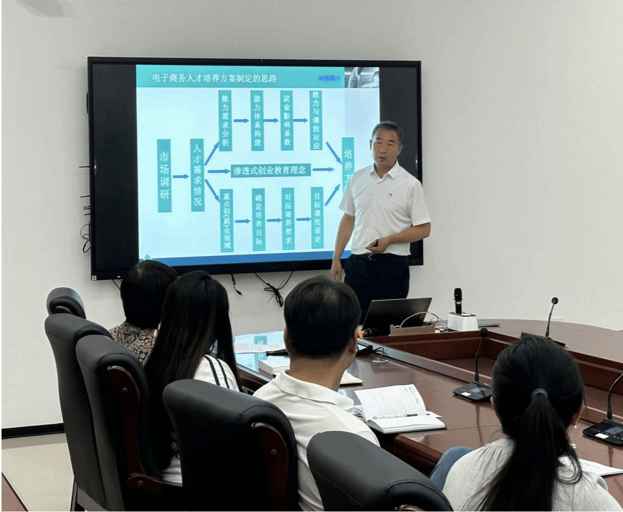 为推进跨境电商专业建设,优化人才培养方案,6月27日,经济贸易系组织召开专题研讨会。副校长董志良出席会议并指导方案制定,系主任张桂芳、副主任单敏飞及跨境电商专业全体教师参加会议。座谈会上,董志良聚焦人才培养方案的科学制定,提出指导意见。他指出,高质量专业人才的培养,核心在于构建科学合理的人才培养方案。方案应立足学校水电特色,紧密服务区域经济发展,前瞻行业趋势,突出应用型人才培养目标。他强调,要通过深入企业调研,...