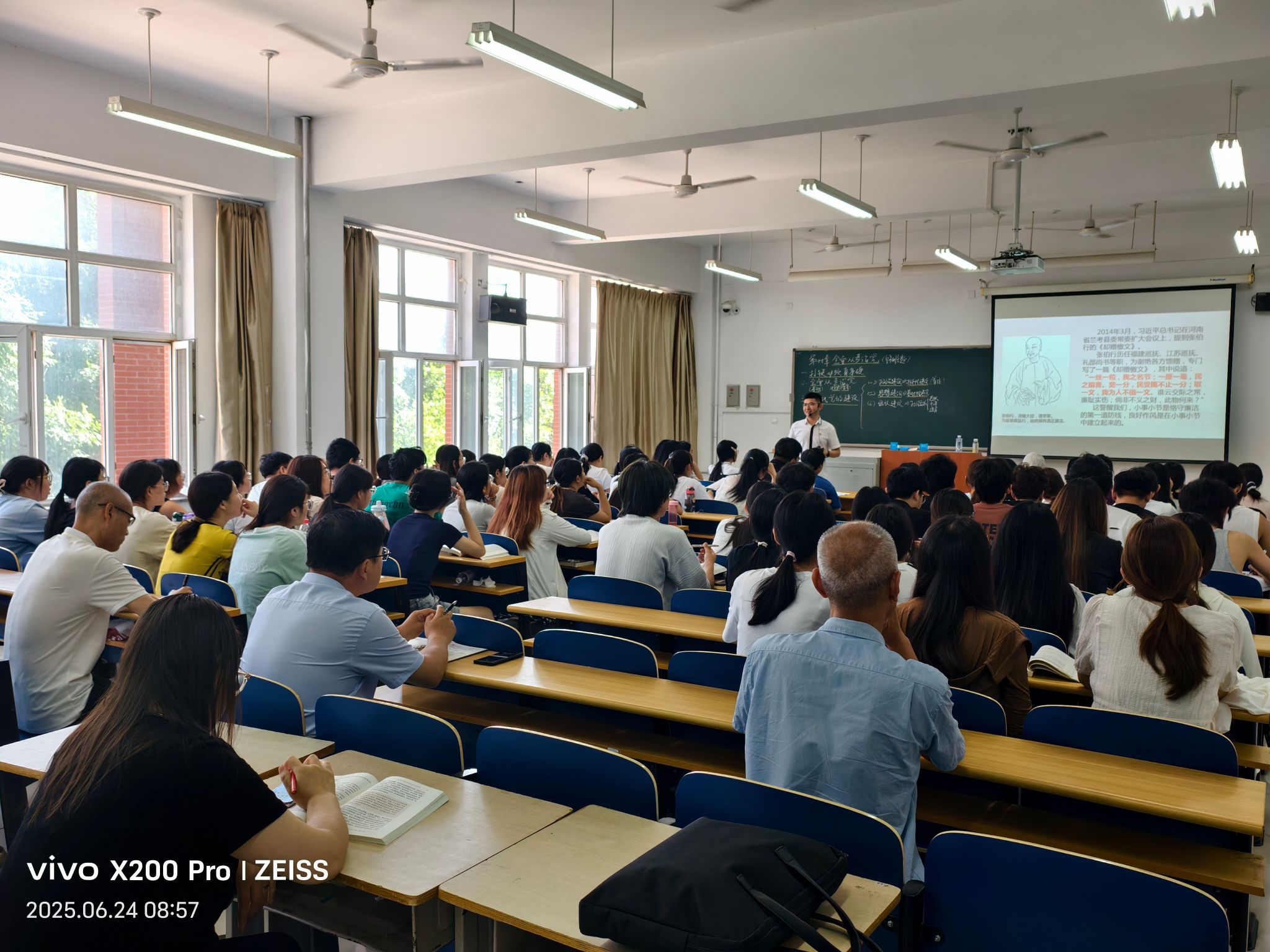 为深入学习领会习近平总书记关于加强党的作风建设的重要论述,扎实开展深入贯彻中央八项规定精神学习教育,6月24日上午,马克思主义学院组织开展了全面从严治党主题示范课活动。本次示范课由习近平新时代中国特色社会主义思想概论教研室尹君龙老师主讲,面向财务管理2301班和财务管理2302班授课。学校纪委书记鲁增秋、马克思主义学院院长贾启红及学院部分教师参加听课。课上,尹君龙老师运用丰富案例,从清朝官员张伯行的《却赠檄文》...