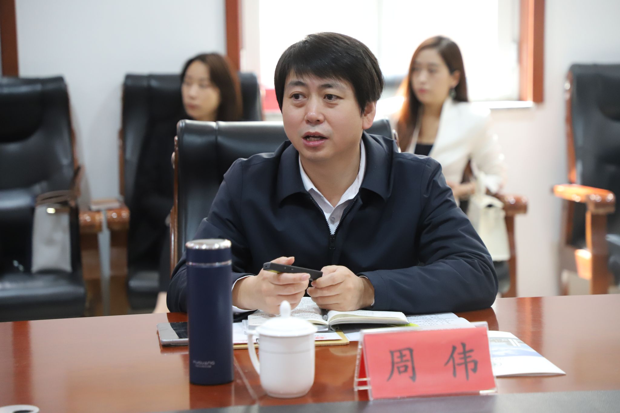 周伟介绍了大数据产业协会的基本情况,智库专家王少燕介绍了双碳与新能源以及产教融合开展情况,专家杨志介绍了智能制造与计算机现代产业学院合作模式。协会智库团队专家与学校各部门参会同志进行了深入交流。