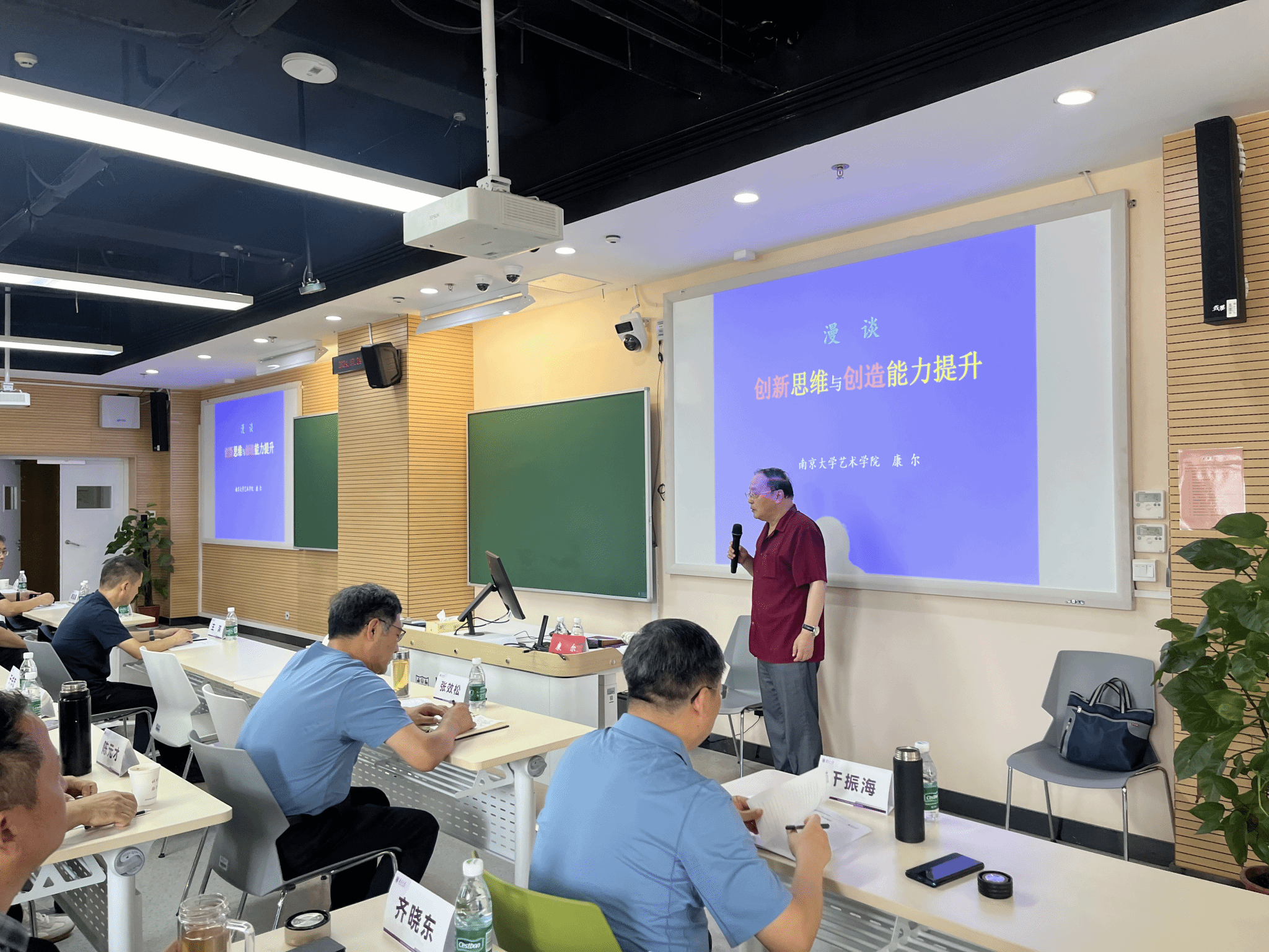 南京大学艺术学院副院长、教授、博士生导师康尔作了题为“创新思维与创造能力提升”的讲座,他巧妙运用“通中求变、承优创新”启迪传承与变革的辩证思维;“东张西望、集成创新”倡导知识融合与原创性贡献;“挖井开荒、避短扬长”鼓励深入挖掘潜力,巧妙规避短板,发挥独特优势;“破矩求新、反常合道”则强调了勇于突破常规,追求真理与创新的非凡勇气。这32字箴言,深刻揭示了创新思维的精髓,更为学员提供了提升创造力的路径与方法。