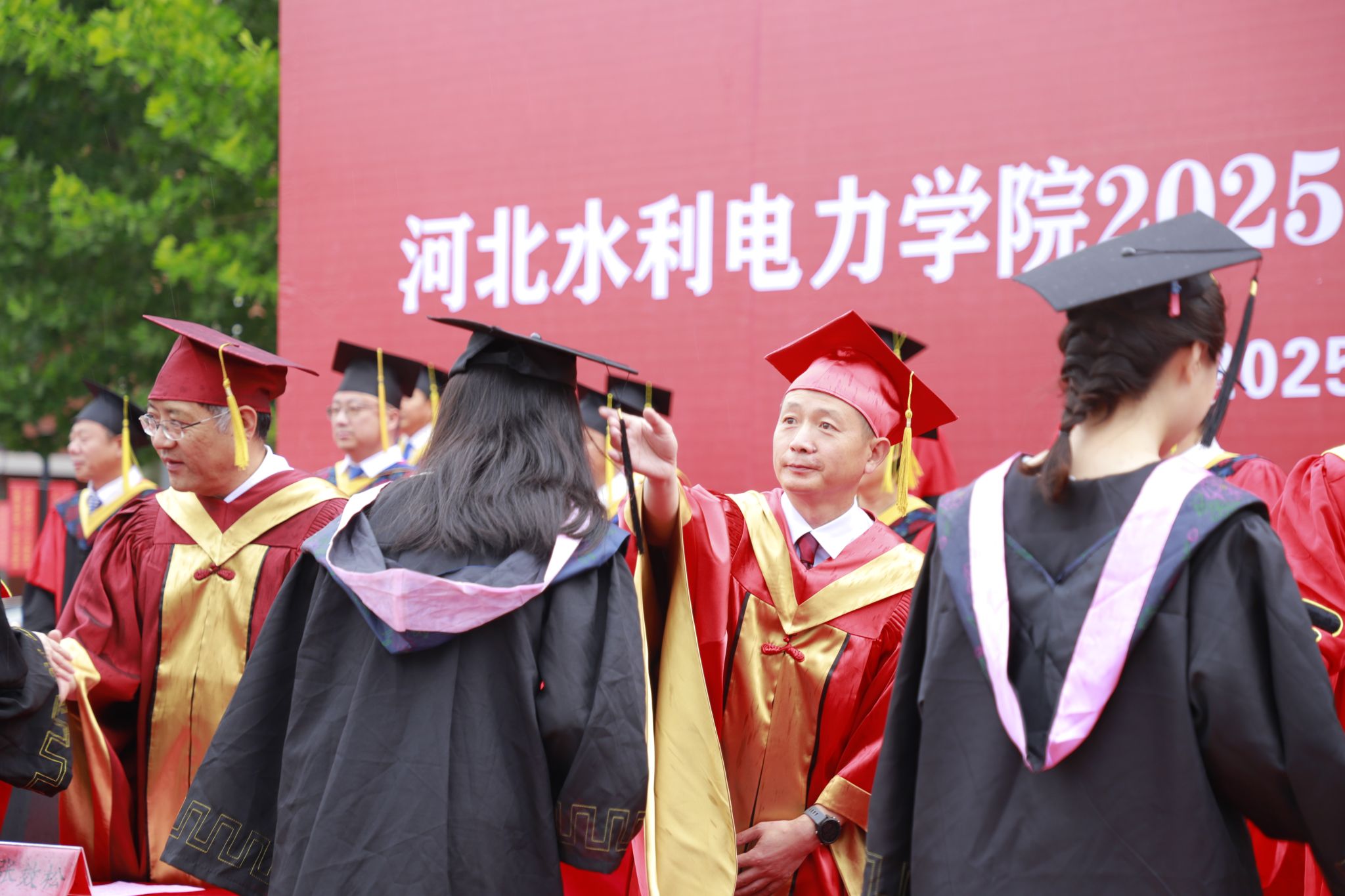 在热烈的掌声中,2025届毕业生代表依次上台,校领导们亲自为他们拨穗正冠、授予学位证书,每一次握手、每一个微笑,都饱含着学校对毕业生们的关爱与祝福。