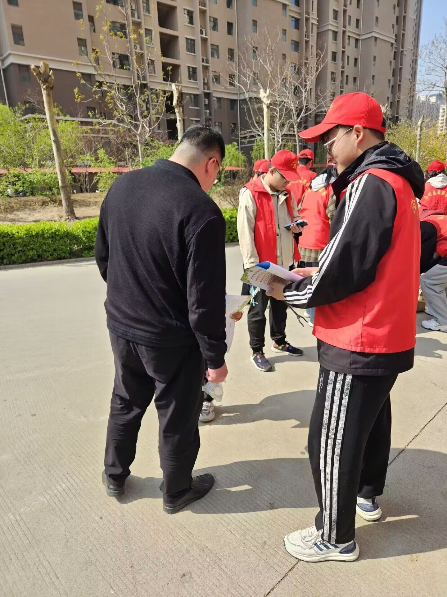 活动中,同学们穿上红马甲,走进社区,撸起袖子,拿起扫把、夹子、簸箕等卫生工具,打扫路面垃圾和绿化带中的杂草、果皮、塑料袋、烟头等杂物。大家发扬奉献精神,不怕苦、不怕累、不嫌脏,将每一个卫生死角都清理得干干净净。同学们共同参与,井然有序,一起打造更加美好的社区环境,呈现出一道靓丽的风景线。此外,志愿者们向居民分发《沧州市创建全国文明城市知识手册》,讲解创建全国文明城市的意义,倡导践行《沧州市民公约》,引导居民遵守社区公共文明行为规范,共同维护社区公共环境。