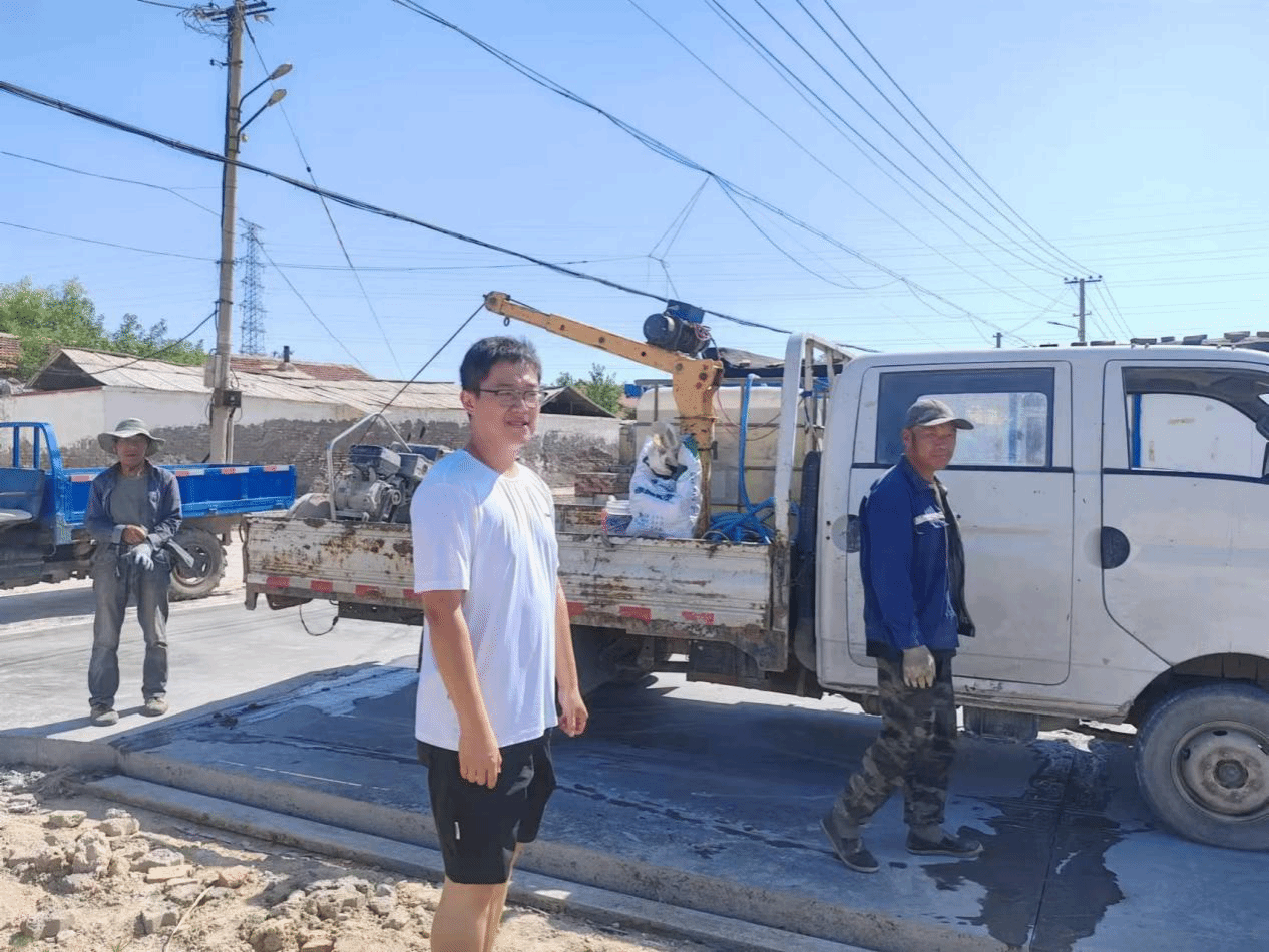 图 4 工作队队员跟进路面施工进度